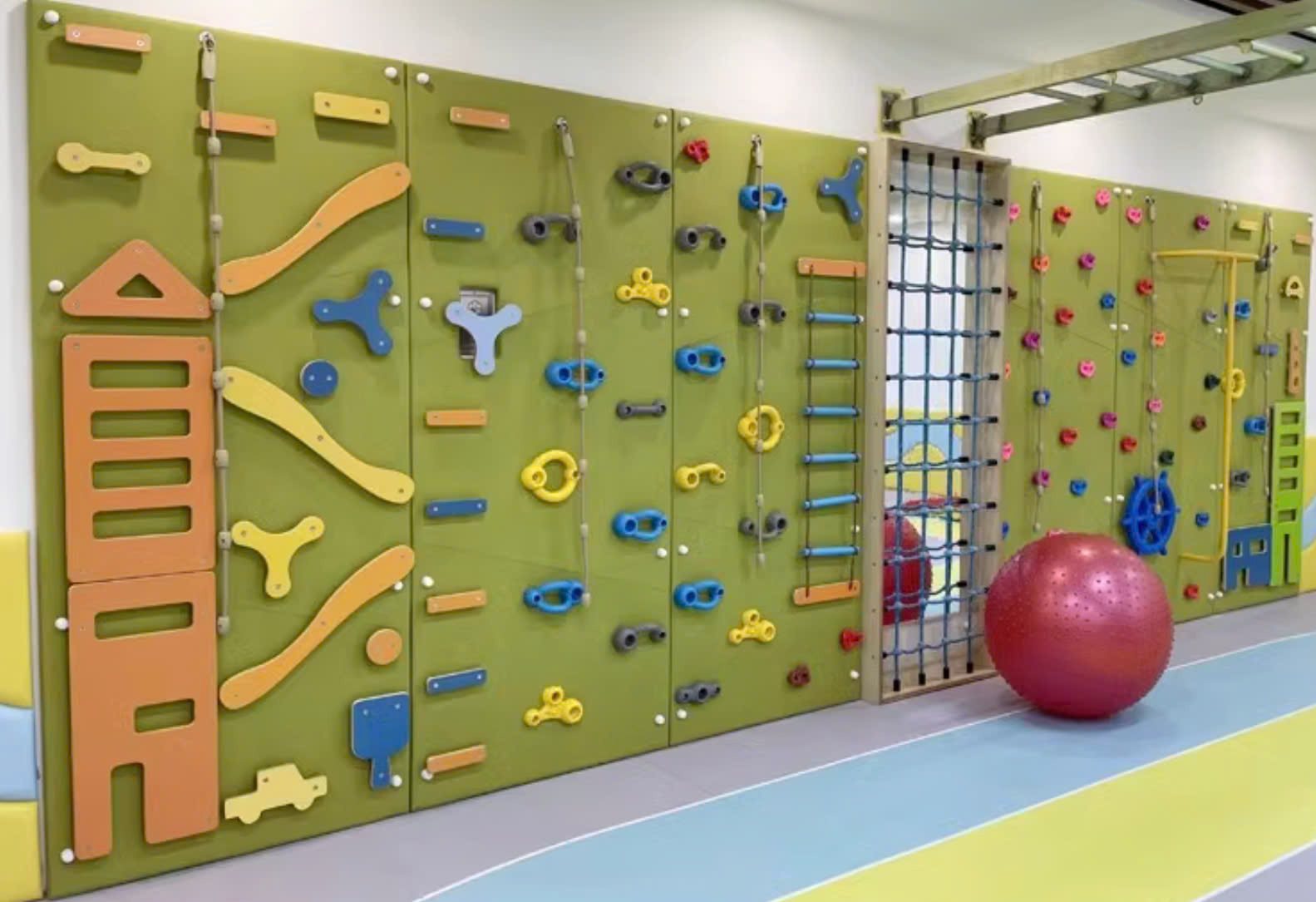 - Mô tả: Vách leo núi mini với đệm bảo hộ.