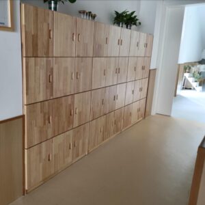 ✅ Tủ giày gỗ: Dùng tại lối ra vào lớp, giúp trẻ học thói quen cởi – để giày dép ngăn nắp, đúng vị trí.